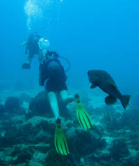 Peu farouche, il s’accommode facilement des plongeurs. C’est lui qui sourit sur le bandeau de la home page de mon site!