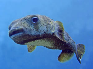 Celui de la photo est un diodon à taches. Sa taille atteint 50 cm. Il vit entre 2 et 25 mètres.
