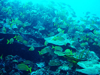 Vit en banc important et compact dans les passes entre les gros massifs coralliens.