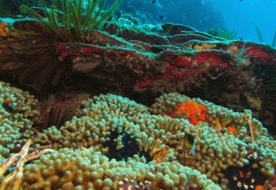 Les espaces entre les branches sont habités par d’autres organismes : poisons, oursins, ophiures, chitons.