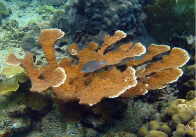 L’espèce vit dans les zones très peu profondes (15 m maximum), sur les pentes externes ou platiers récifaux. Elle s’installe dans des zones agitées à hydrodynamisme élevé et dans les eaux claires.