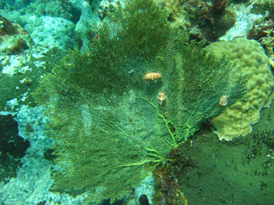 Famille des gorgones. Colonie de 30 à 120 cm. Branches aplaties dans le plan de la colonie avec un double rangée de polypes émergeant du bord étroit. Le bout de chaque branche se replie pour former un petit entonnoir.