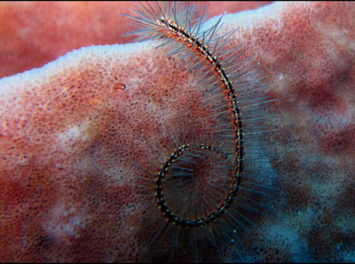 Exemples d'échinodermes Ophiure Publié par natiyabel le Mai 25, 2016juin 8, 2016 Le disque central forme un coussinet qui mesure entre 2 et 3 cm. Les bras mesurent entre 10 et 15 cm. Espèce très robuste au toucher, qui vit entre 2 et 30 mètres sous les pierres ou dans les éponges. En savoir plus avec DORIS En bas à droite, on aperçoit un crabe-flèche Détail d’un bras J’aime chargement… Sur le même thème