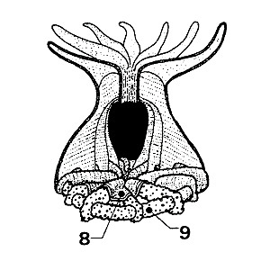 - disque basal (8), qui secrète un squelette calcaire (9)
